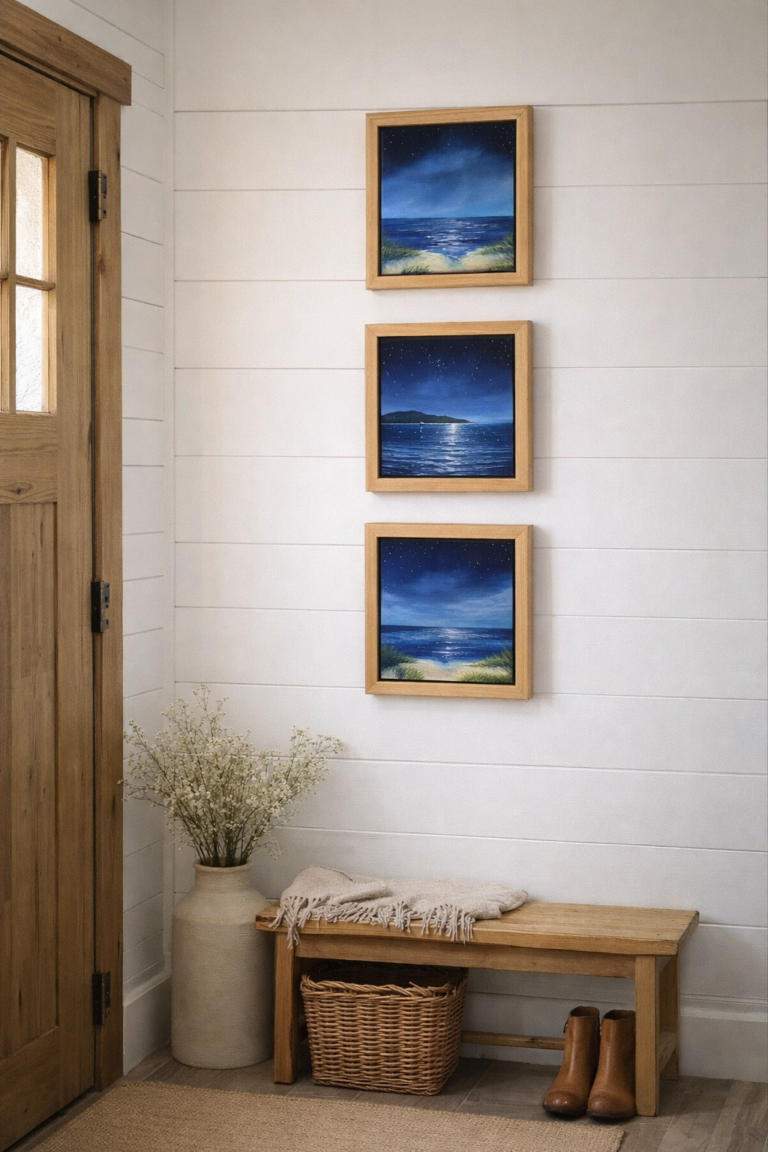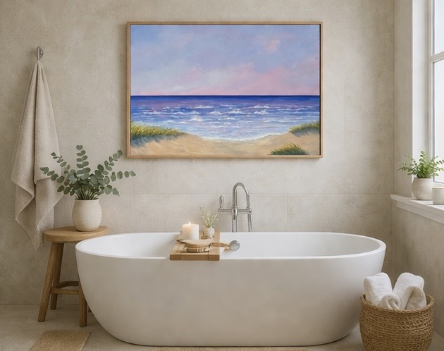 Ich male Meereslandschaften aus der Erinnerung – reduzierte, ruhige Räume zwischen Realität und Gefühl. Meine Bilder bewegen sich zwischen realistisch und abstrahiert und lassen bewusst Raum für eigene Assoziationen.