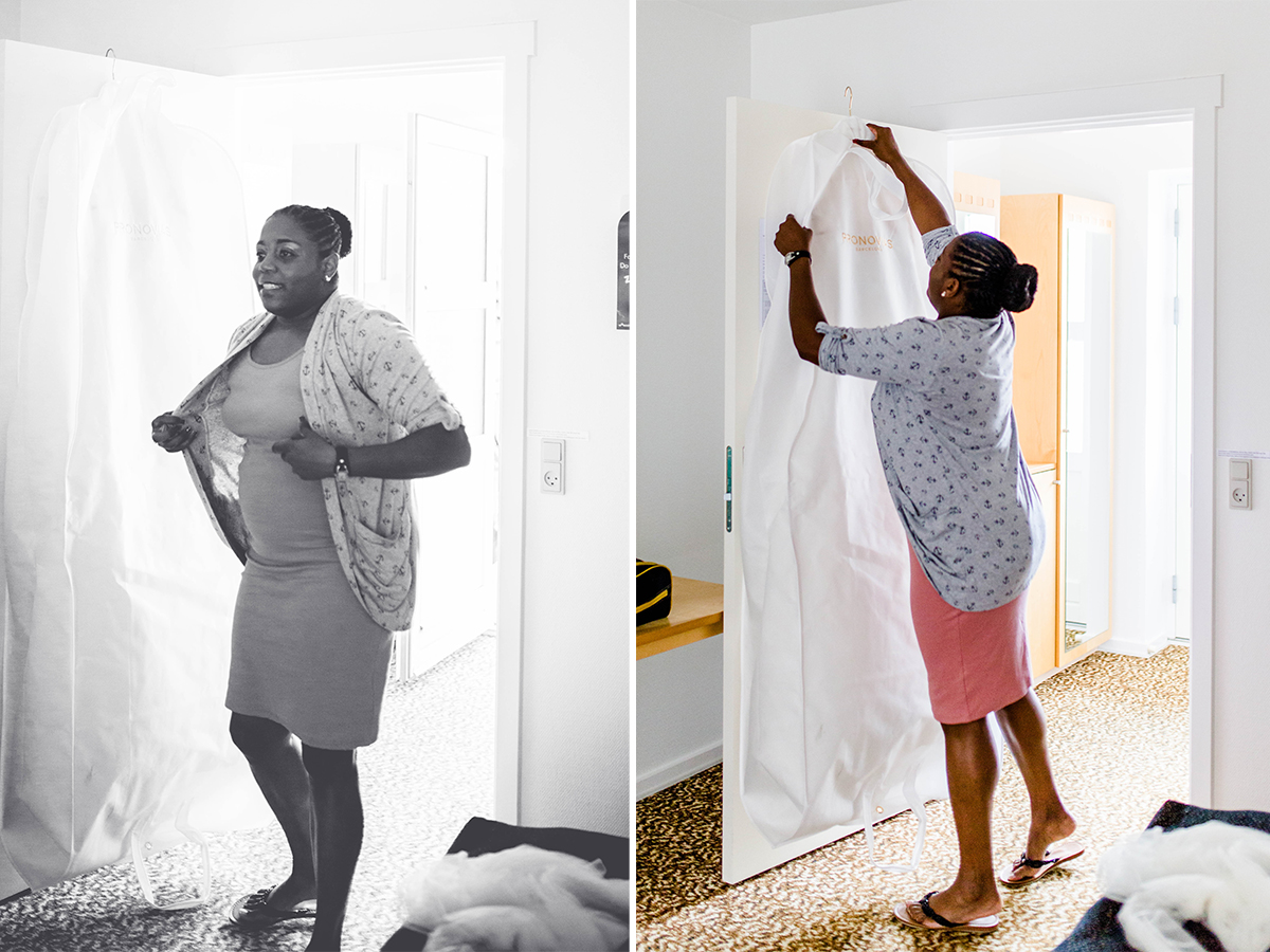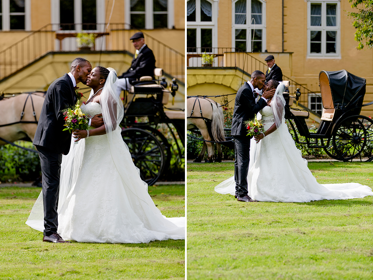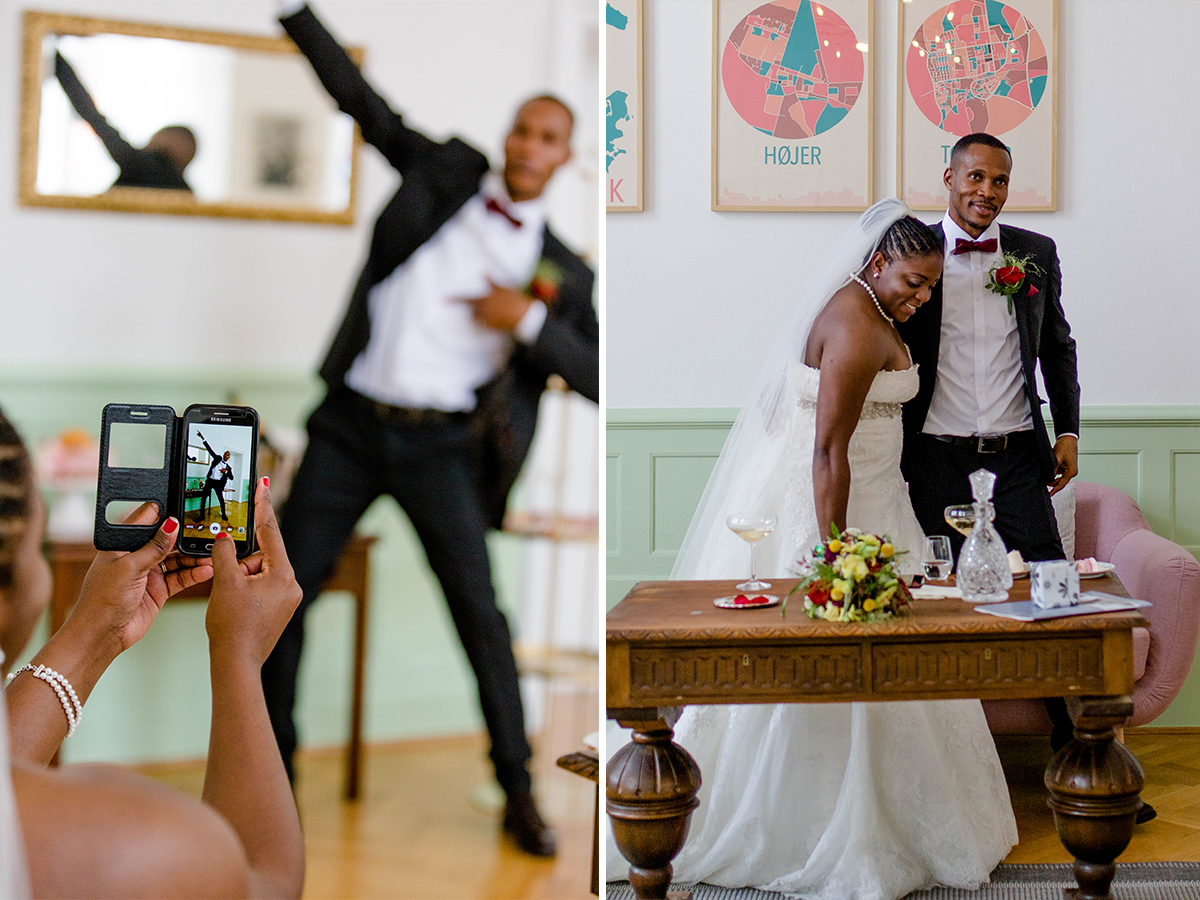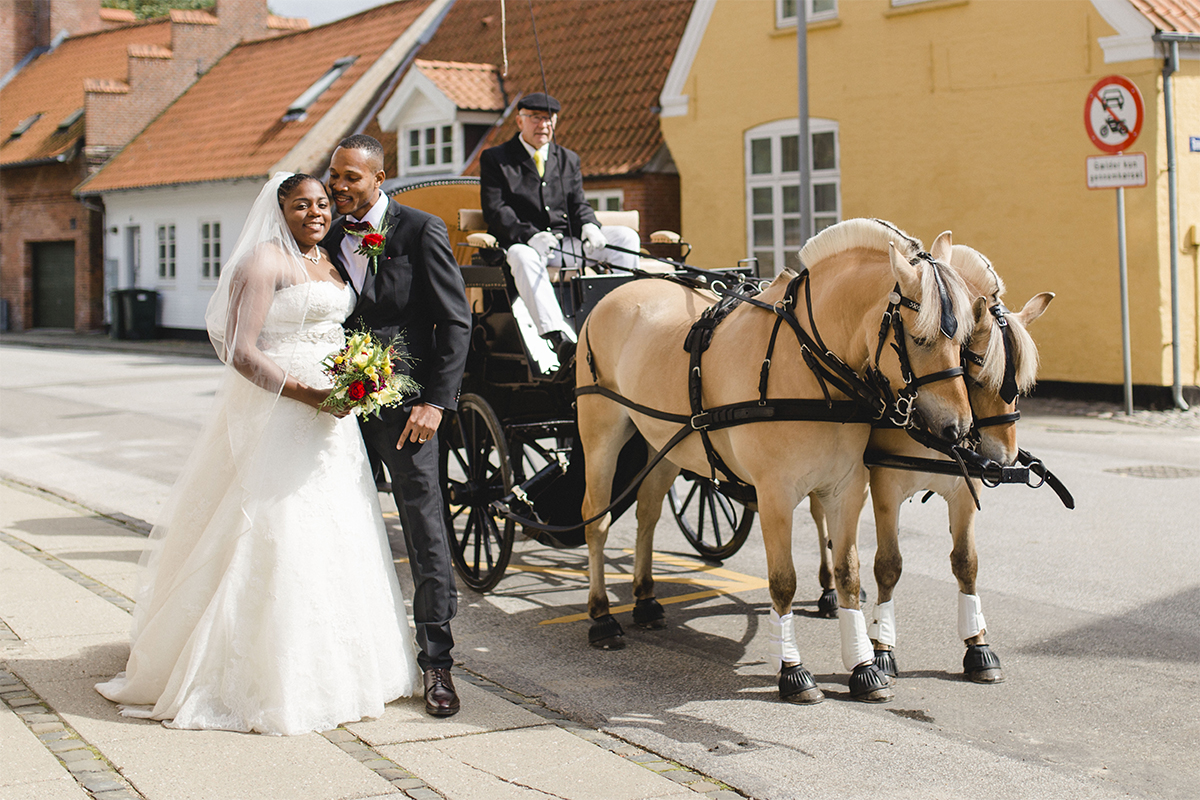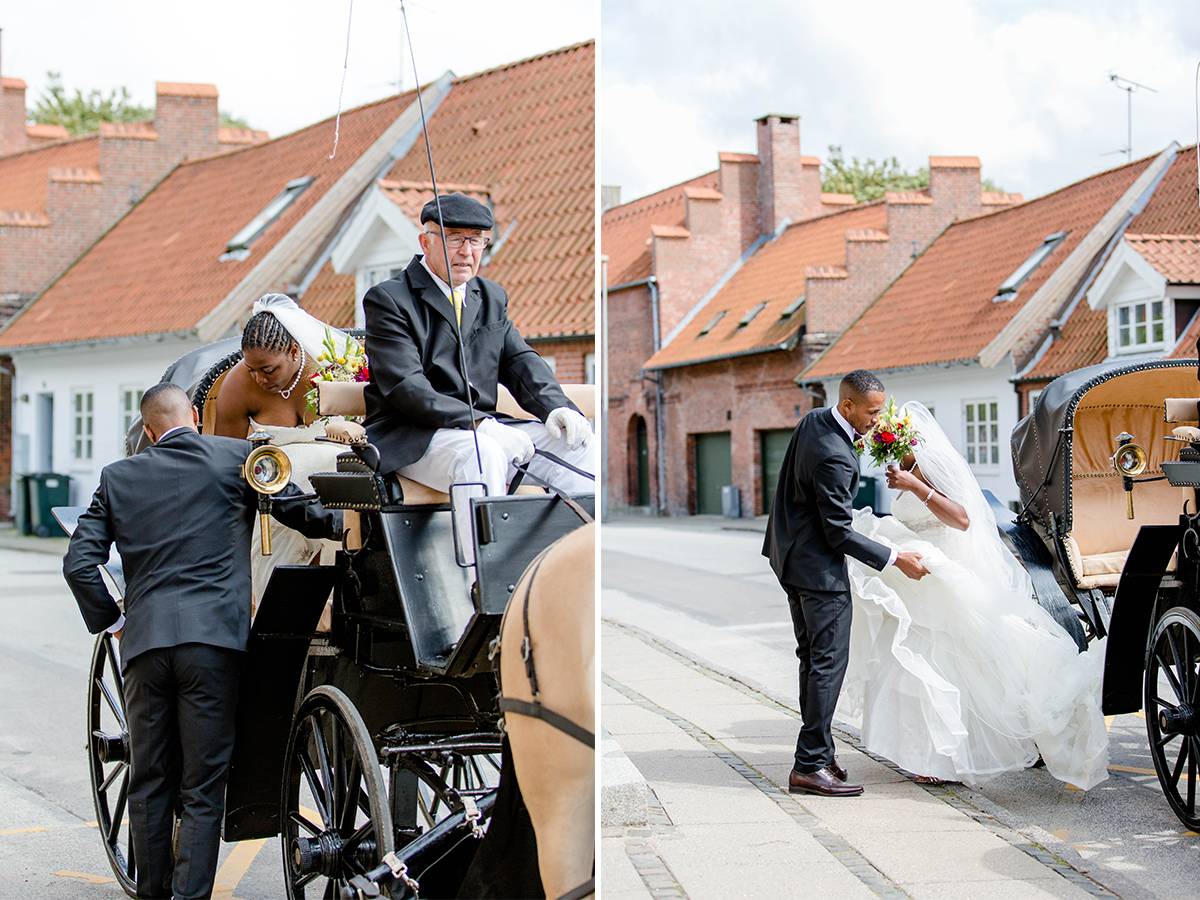 Die Hochzeit, die ich euch hier zeige war großartig. Nach vielen Regentagen haben wir einen warmen und sonnigen Tag erwischt. Gemeinsam mit YES I DO sind wir zum Hotelzimmer des Brautpaares gegangen und haben festgehalten, wie Braut und Bräutigam sich für ihren besonderen Moment zurecht gemacht haben. Um das Brautpaar vom Hotel zur Trauung zu bringen, haben YES I DO eine Kutschfahrt durch Tondern organisiert. Ok, an dieser Stelle wurde es bei einem sonnigen Augusttag etwas anstrengend…., denn wir sind nebenher gelaufen zum Fotografieren. Da auch noch Tondernfestival war, gab es kaum eine Möglichkeit mit dem Auto vor zu fahren, denn die meisten Straßen waren gesperrt. Aber die Bilder, die dabei entstanden sind, halten unvergesslich schöne Momente fest.