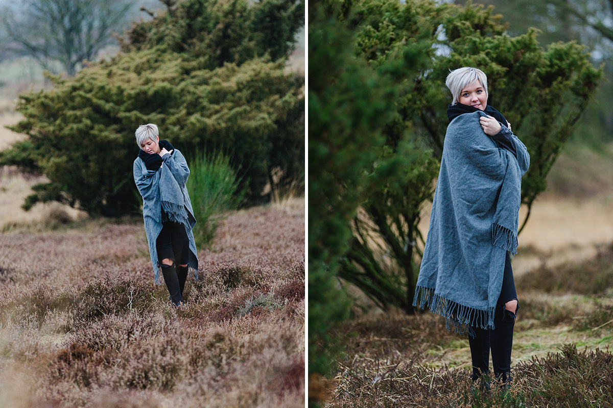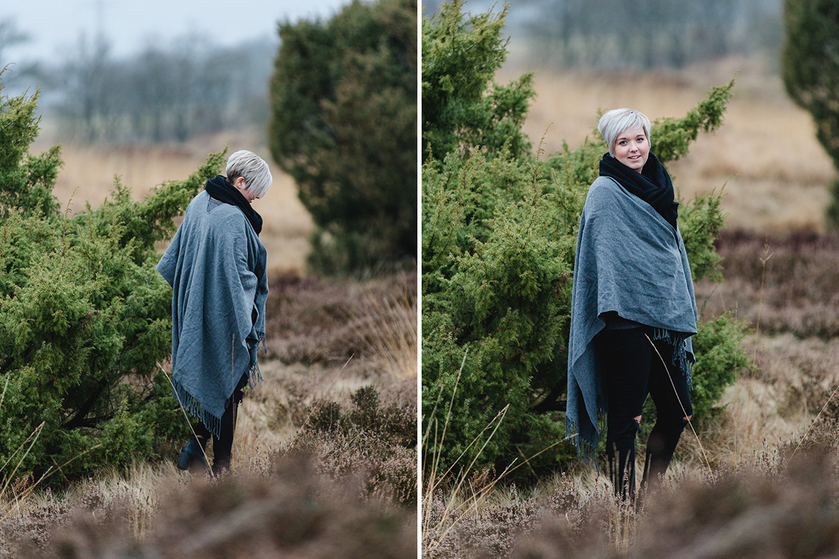 Bevor nun der Frühling ganz und gar Einzug hält, möchte ich euch unbedingt noch ein wundervolles Outdoorshooting in der Heide zeigen. Es war wirklich ein nasser und kalter Tag, aber die Vorfreude auf das Shooting war so groß, dass wir dem Wetter trotzten und einfach die wundervolle Umgebung und den Spaß beim Shooting genossen haben. Ein tolles Beispiel dafür, dass man auch wirklich schöne und stimmungsvolle Bilder bei nicht ganz so gutem Wetter zaubern kann.